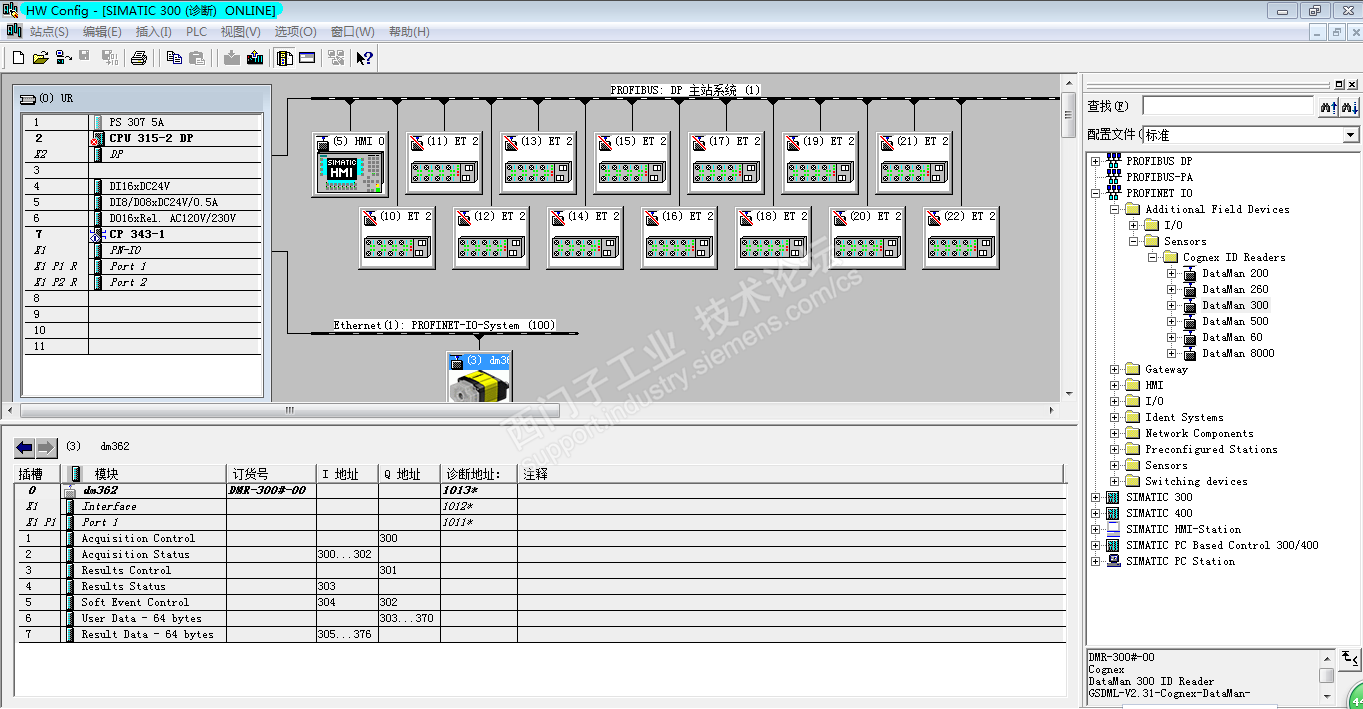 各位老师,请教一下我现在通过CP343-1链接一个康耐视的扫码器DM362,硬件组态没有报错,就是读不到数据。到底差在哪里呢·····