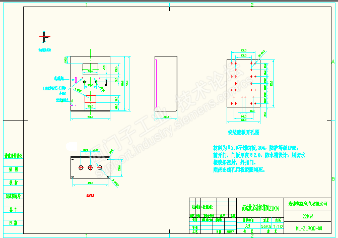 根据材料表及客户要求设计合适的柜体,以及初步确定主要器件的安装位置: