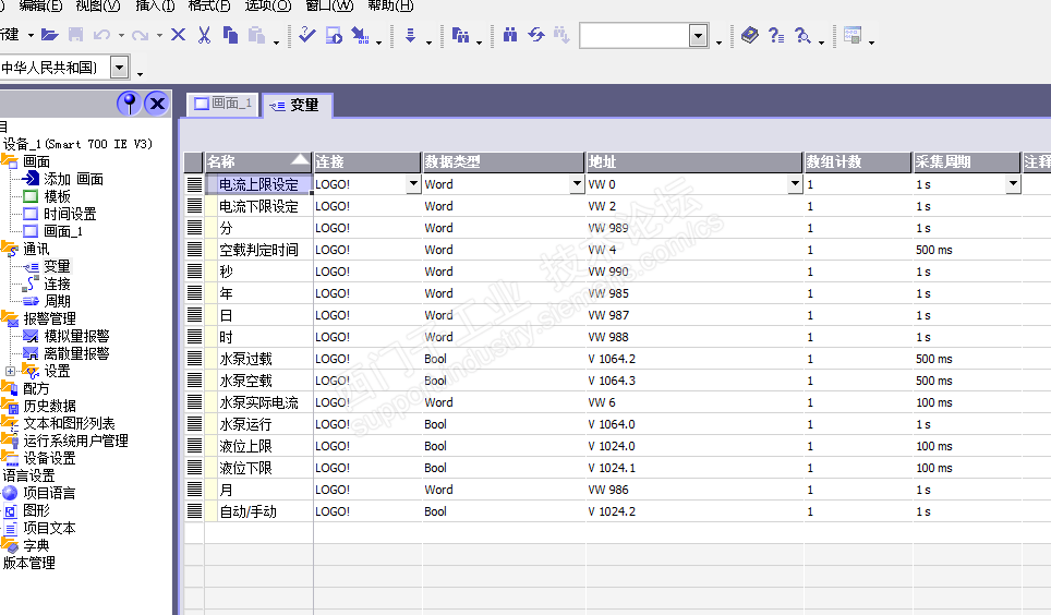 LOGO!及触摸屏变量的对应: