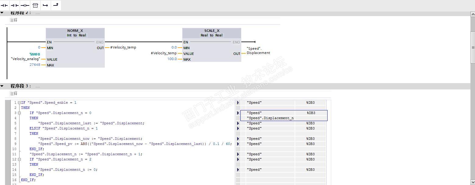 IW98对应0-100MM(这个随便写的)的行程量,如果N=0,位移=last,,如果N=1,位移=now,(now-last)/时间,换算成MM/MIN,N+1,如果N=2,则N=0。