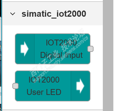 系统 Node-Red 自带的 PIO 节点是通用的,并不是IOT 所设计的。要使用 IOT2040上的 (兼容 Arduino )DIO 需要安装 Simatic-iot2000数字输入节点,用于传感器 输入。
