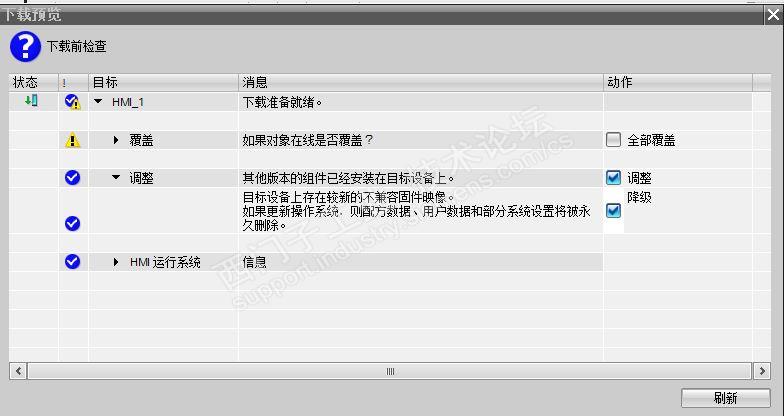 ktp400的hmi13.0.1.0降到13.0.0.0的怎么降级失败,一开始连接上的,连了一半就中断了,是不是hmi里面需要设置的吗?