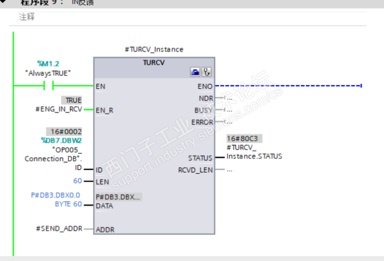 我在1515上用UPD通讯方式和PC通讯,先用TCON建虚拟连接,然后是TUSENT和TURCV,不过我用了两对,都可以向外发,但是收的时候第二个TURCV就提示这个了,接收不到,错误码提示资源不够。不知道这个要多少资源,有了端口号能带多少个?我用一个ID号,把程序分成两个FB块还是不行,不知道是不是有限制??请高手指点