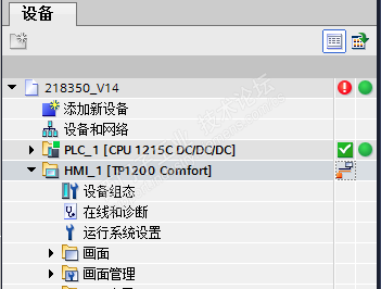 3,仿真在线模式下,HMI后面有个不兼容的提示图标。