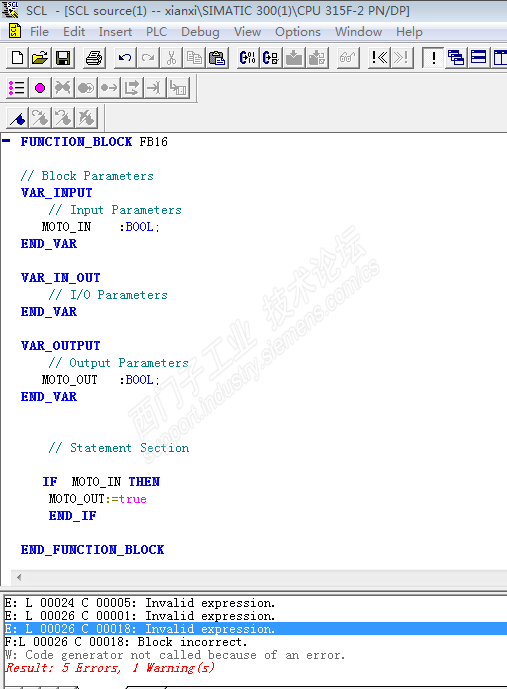 求师傅们指示,SCL真难学呀。为什么我加了条IF指令,就出现错误呢,没加之前编译是没报错的。