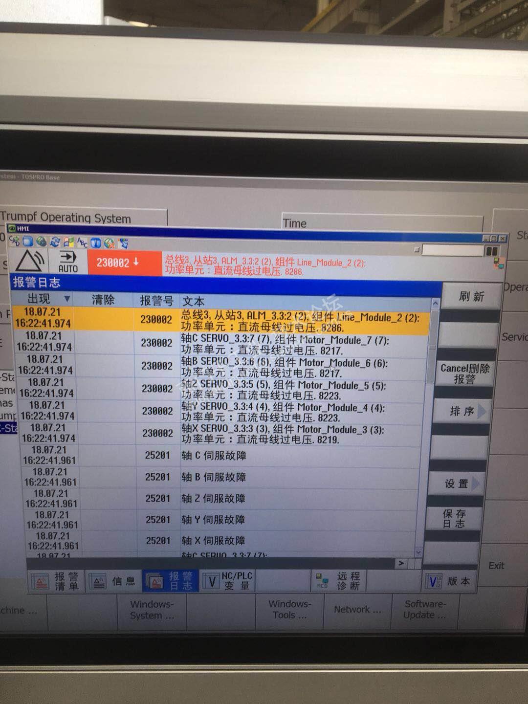 最近有九台同一型号五轴数控机床840dsl系统每台都配有稳压器,正常使用了2个月没有问题,最近一周连续出现西门子840DSL 出现207862 206200 207841,25201 23002报警,更换过了AIM,ALM 以及滤波器,均不能解决问题,已经没有了头绪,请各位大侠给予支持,回答的详细一点,在现场有操作性,谢谢大侠
