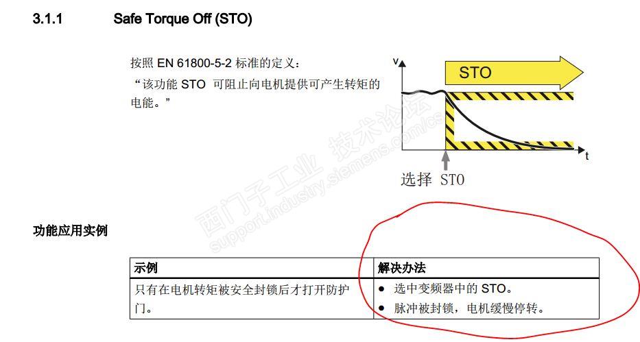 红圈中表达的内容是正确的,1 激活STO功能后驱动会被封锁脉冲,转矩降为0。