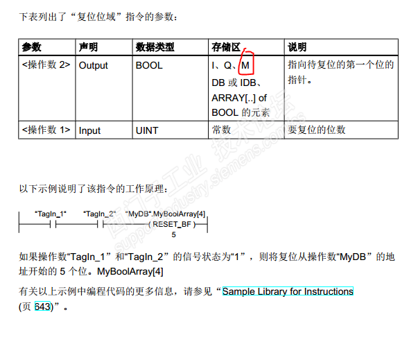 参考手册,操作数2写着要复位的第一个位,M0.3,操作数1写着要复位的位数,11。
