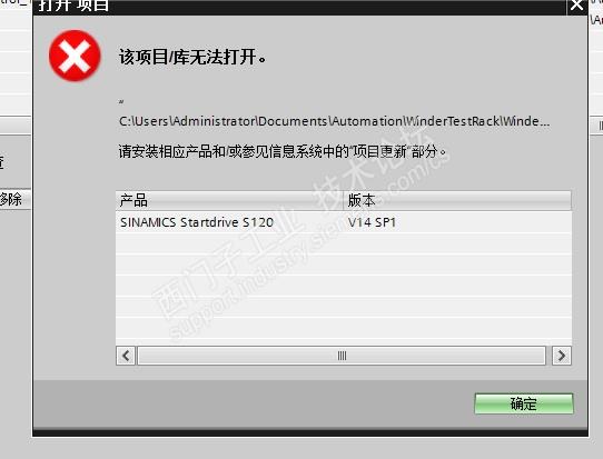 我下示例文件但是打不开,软件提示需要安装SINAMICS startdrive s120 v14,如图怎么解决?