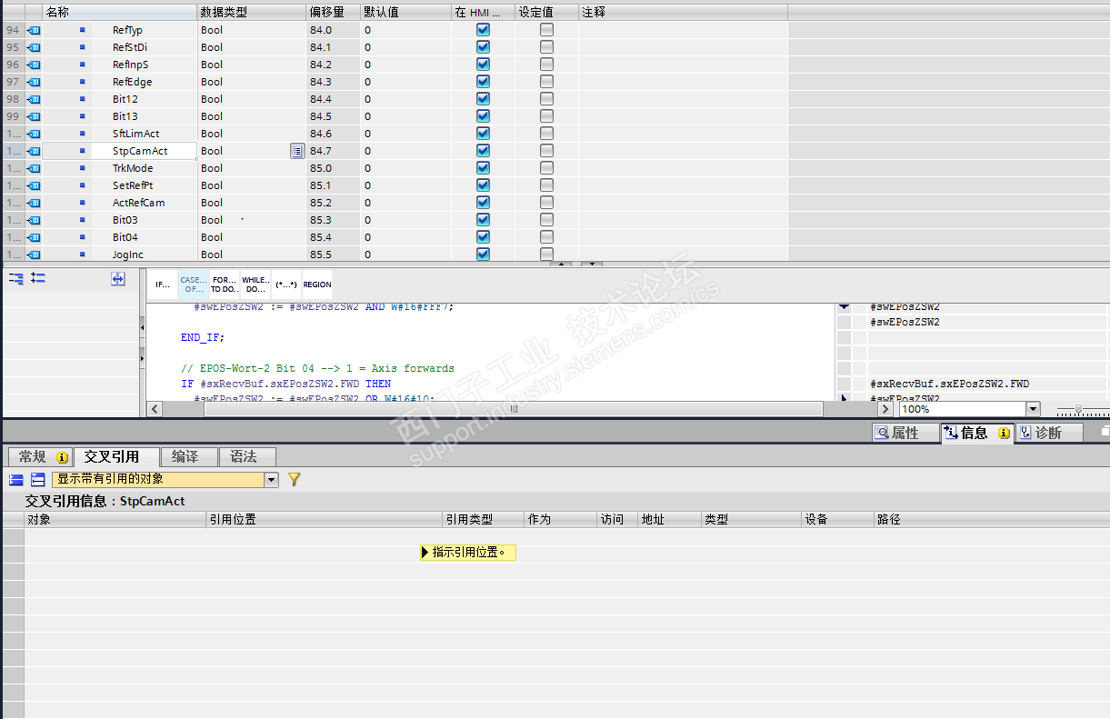 你好,我新建了一个看了看,交叉引用了一下,“SftLimAct”和“StpCamAct”这两个变量没在块里没有引用,请问是否我用的块不对还是版本不对呢?我后面去现场再试试吧,多谢版主~