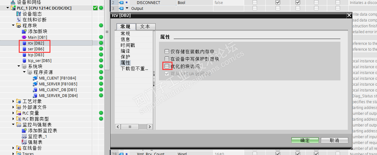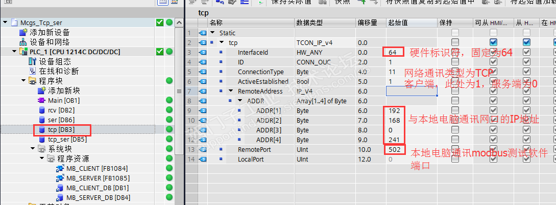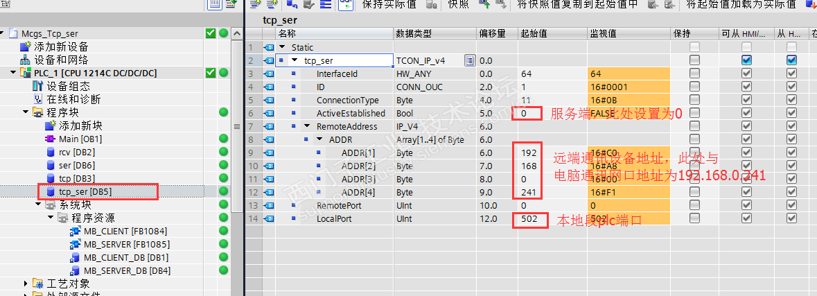 1.4. 1200PLC服务端数据块ser和(存放数据)和网络连接数据块tcp_ser(存放网络连接参数)