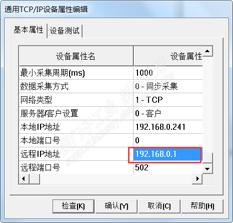 修改父设备IP地址为192.168.0.1(PLC地址),其他参数及配置保持不变