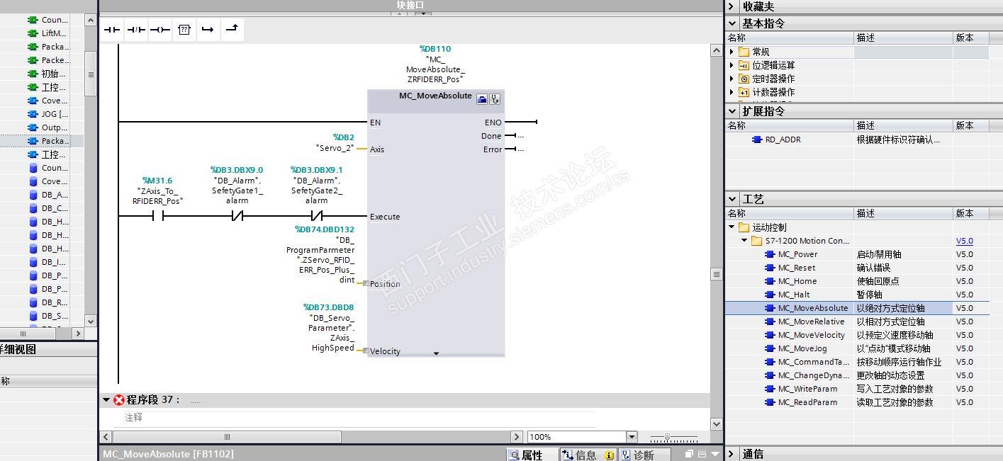 在这一套程序中我只看到这两个伺服指令,以及满足运行条件,在出现故障时手动解除,手动放松物料,为什么没有自动,相对运动控制回原点,而是通过外部控制方式回原点复位,操作运行。所以我想问一下老师:伺服编程一套完整的思路,一套程序编写没有BUG的情况下及常用的指令是怎么样的?