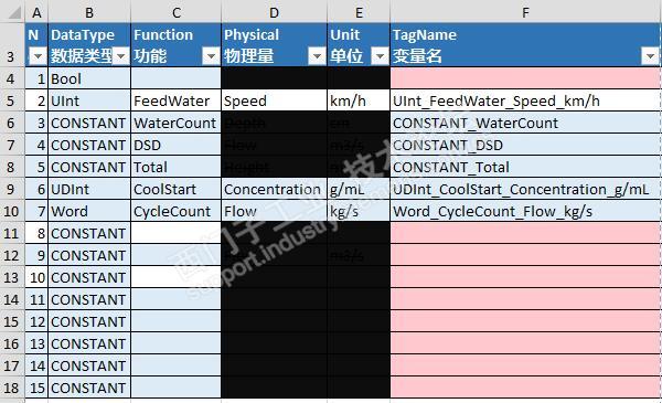表格最后制作完成后,用起来很爽!可是,想要这种结果的前提是,你必须做大量细致的准备工作!这一点没有任何商量的余地;就像PLC代码自动生成,HMI画面的自动生成等,辛苦一时,爽了多年。