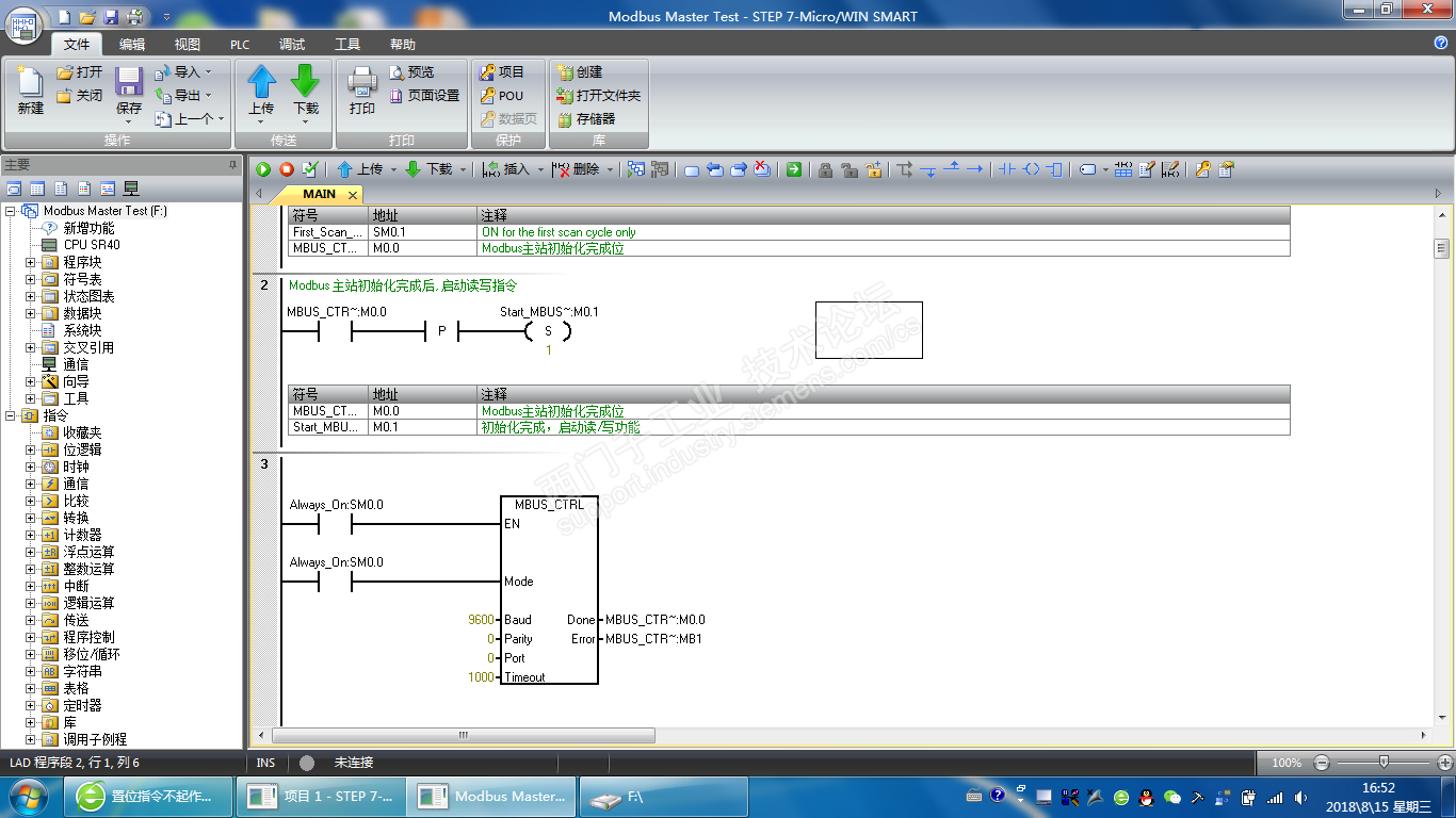 上面是西门子发的程序,里面的M0.1我在PLC里面测试一直不能置位,西门子客服说他们测试没问题。