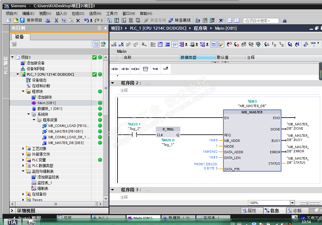 有没有会做485通讯的大佬求帮忙 , 我发送接收的数据问神魔不一致,到底是哪里出了问题,发现接收回来的数据和master指令的引脚数有关而不是db块里面的数据,是我组态的问题吗,求大佬帮忙解决或者给个教程,谢谢感谢,谢谢谢谢