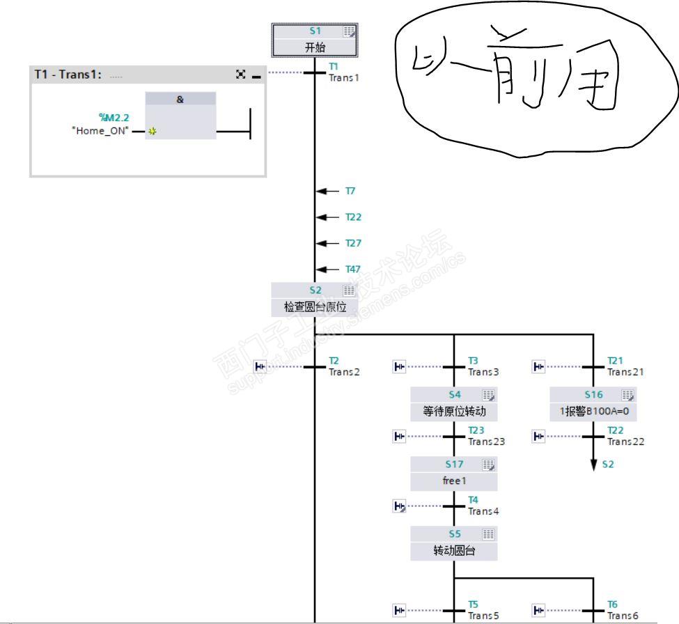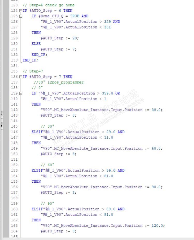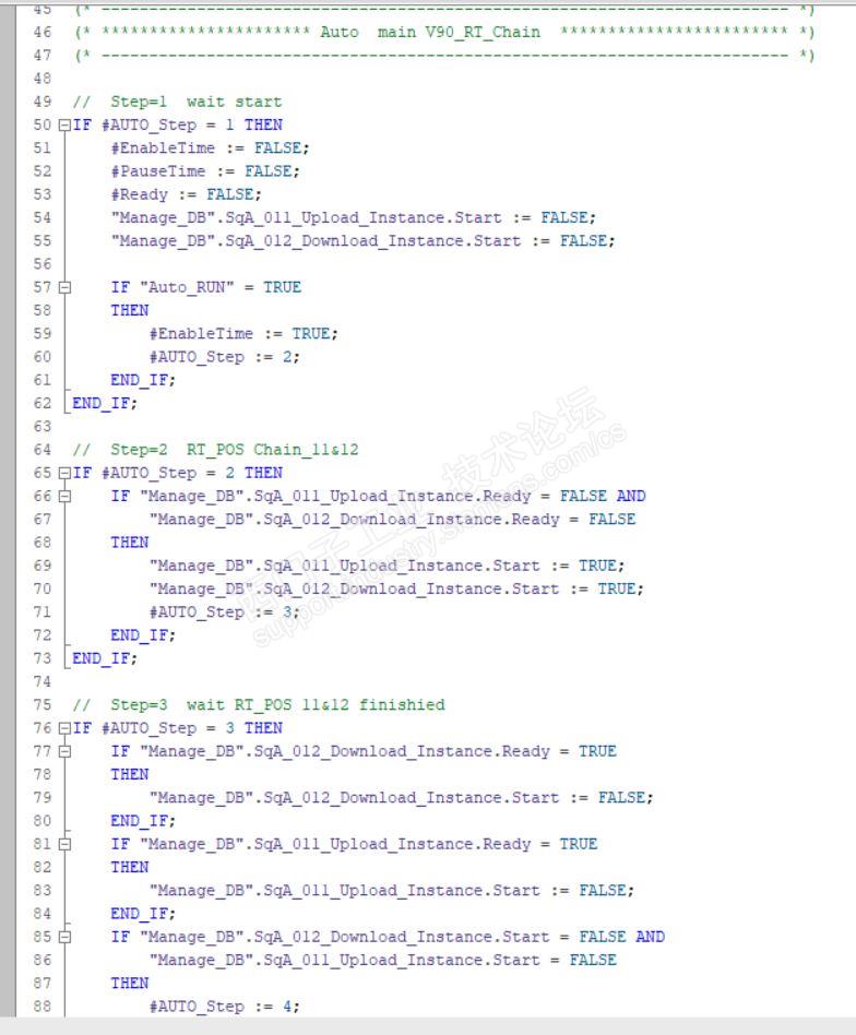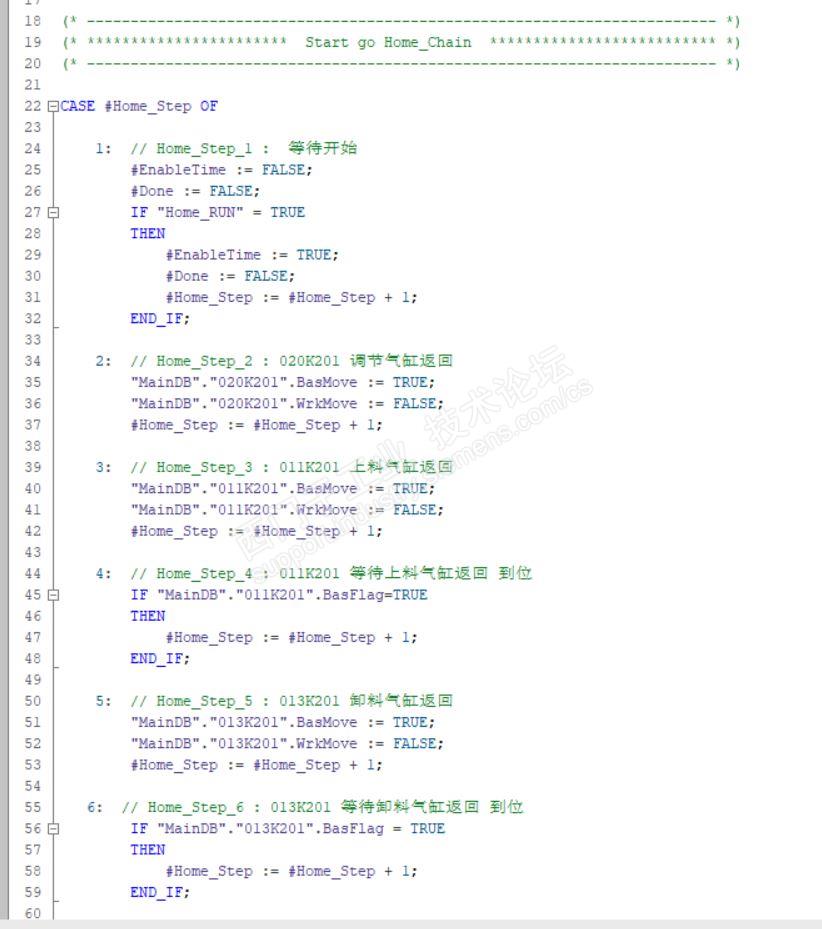 用西门1500PLC编自动化设备顺序控制,以前都是用GRAPH (SFC)编程完成。最近比较流行用SCL (ST)语言编程,正好手上有一个项目就试着用SCL编程,调试设备时发现了一个问题,设备动作一次要好几十个扫描周期才能完成,一个扫描周期大概是9ms, 设备动作一次大概30个扫描周期 9X30=270MS,此设备对节拍要求很高,系统扫描时间暂用200多毫秒,翻来覆去看软件找问题,终于找到了原来CASE 语句用的不恰当 ,最后改成了用 IF 语句编写顺序链,问题就解决了。