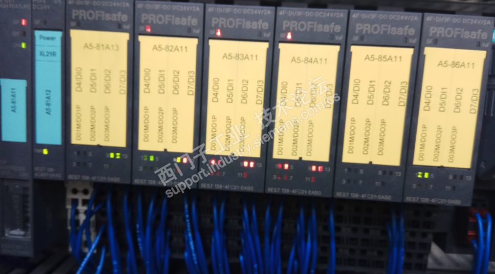 楼主,你观察下指示灯1和5、3和7、9和13,每个安全集成有两组外部信号控制,若有两组外部信号不同,红色指示灯就会亮!比如 INSE[1] 和 INSEP[1] 的信号状态不一致。再有 INSE[n] 和 INSEP[n]的公共端不能并联,如果并联也会发生这种情况!