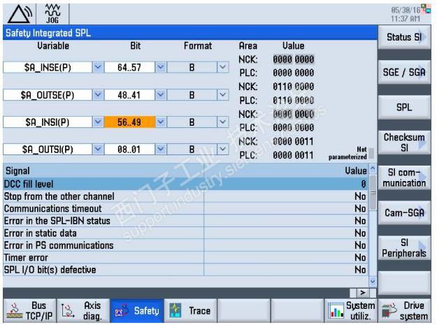在诊断画面里,在扩展菜单中可以找到“安全”,在那里可以查看安全集成输入或输出的状态,当然这个页面里的内容有点多,我们也是难得弄一次,就没有特别注意。具体可以参照