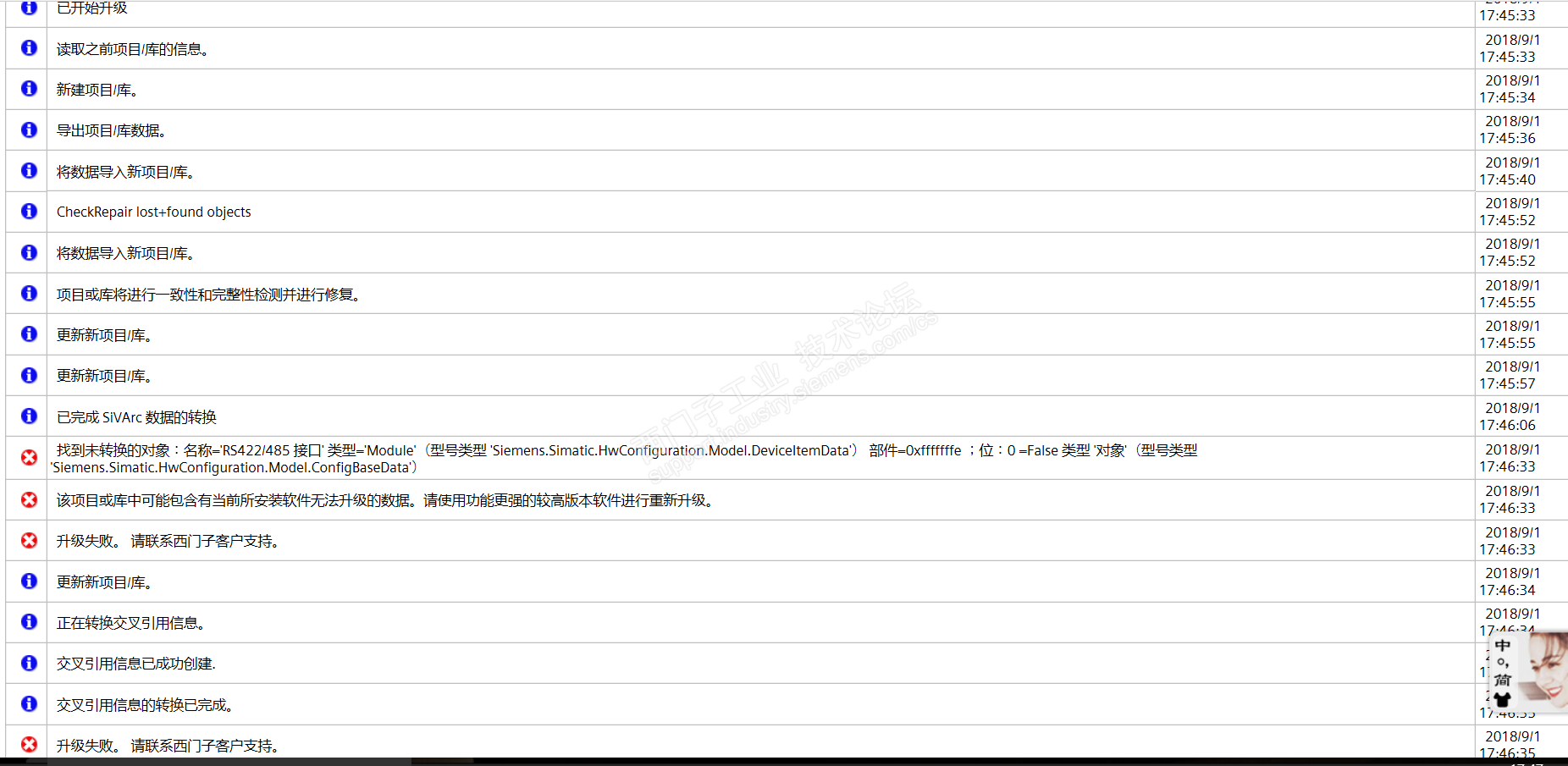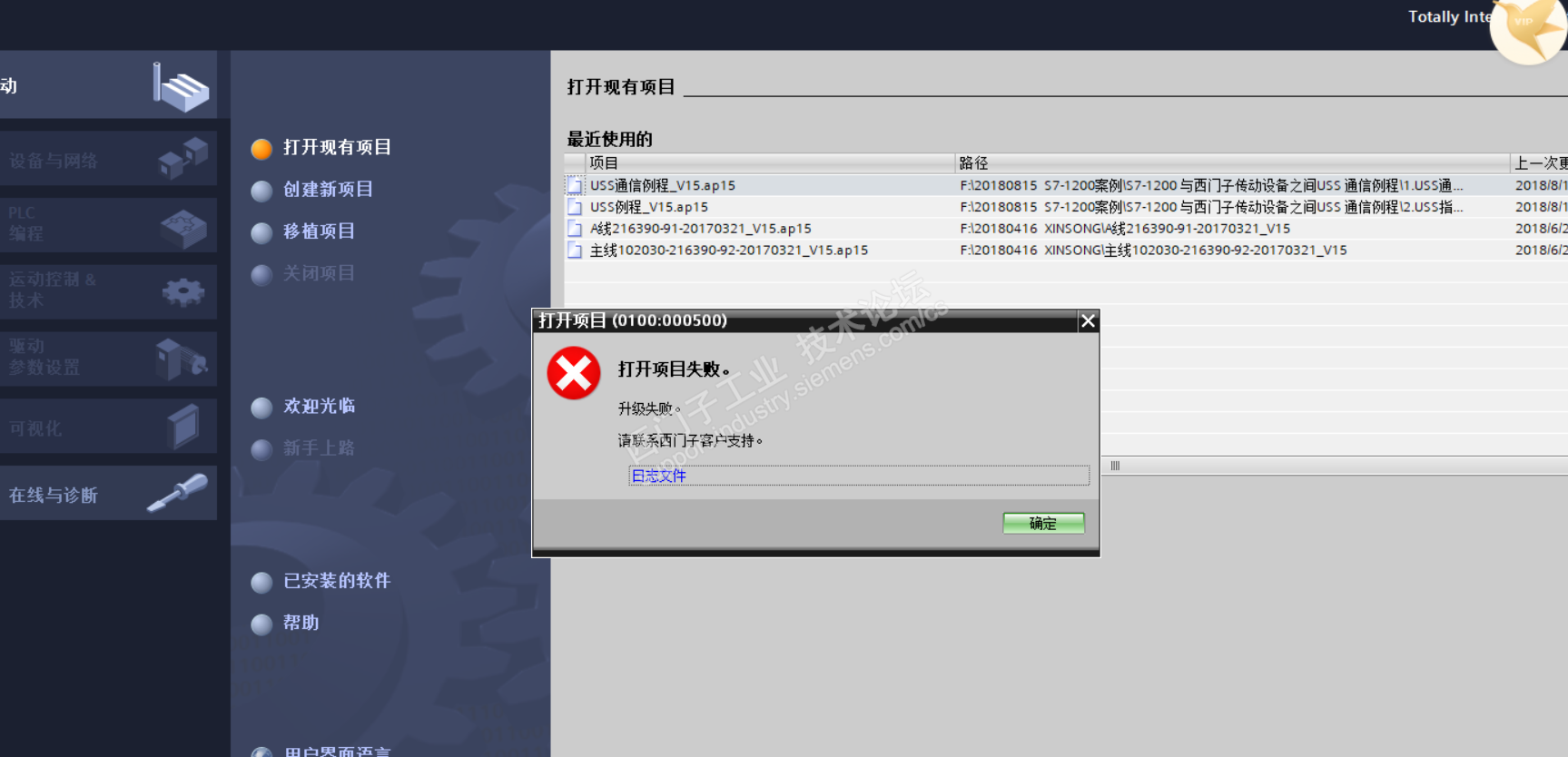 V15版本无法为V13sp2版本案例升级,老是失败,但是另外相同硬件配置的V13案例,用V15版本就可以成功升级