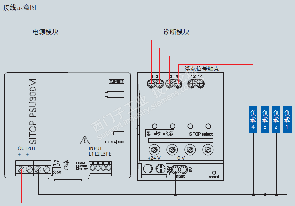 诊断模块安装在负载与电源之间,为多个支路分配电流,具有故障识别、短路保护的功能。