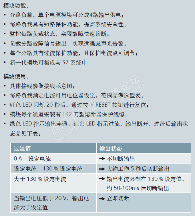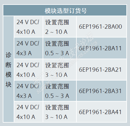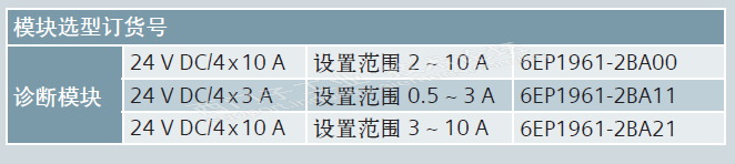? 建议2:如考虑成本压力,可每 10 路负载使用 1 个诊断模块通道。通道设置电流 10 A,4 路通道共计通过电流 10 A x 4 = 40 A,可选 6EP1 961-2BA00 或 6EP1 961-2BA21