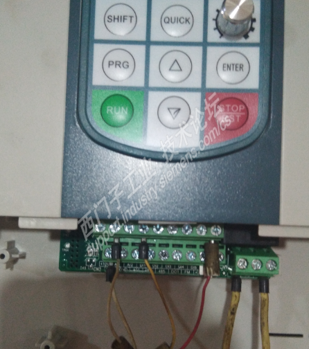 说完我开始动手改控制线,改新变频器的的控制模式为:DI1端子,AI1为电压输入信号,