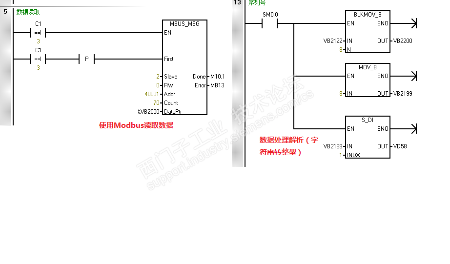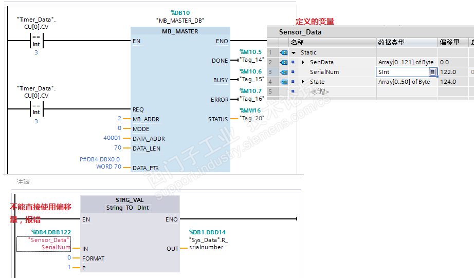 请教.....我使用Modbus通信从仪表读取一系列数据,处理方式各不相同,需要单独处理。以前使用200smart,直接使用地址偏移量处理就行了。但是1200好像不行,必须得先定义变量类型,这样岂不是特别的麻烦,而且我读八个字节的字符串,怎么定义变量。谢谢给位大佬,能否帮忙解答一下