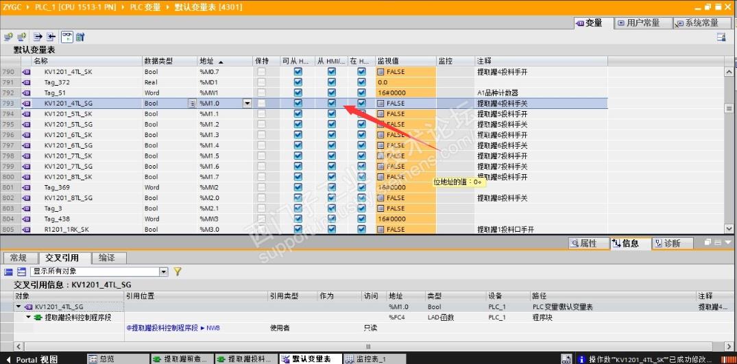 博图V14软件编程中,有的M点从上位机写值,写不到下位程序里,从程序中强制也不动作,重新建一个M点或者从DB块里建一个布尔型的变量连接上就好了,各位谁有遇到过,这是怎么回事?
