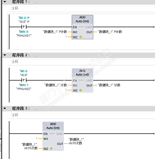 其中OB35次数是在定时中断中进行计数,在主程序中进行复位,这样,能保证整个程序的扫描周期大约稳定在设定的毫秒时间内
