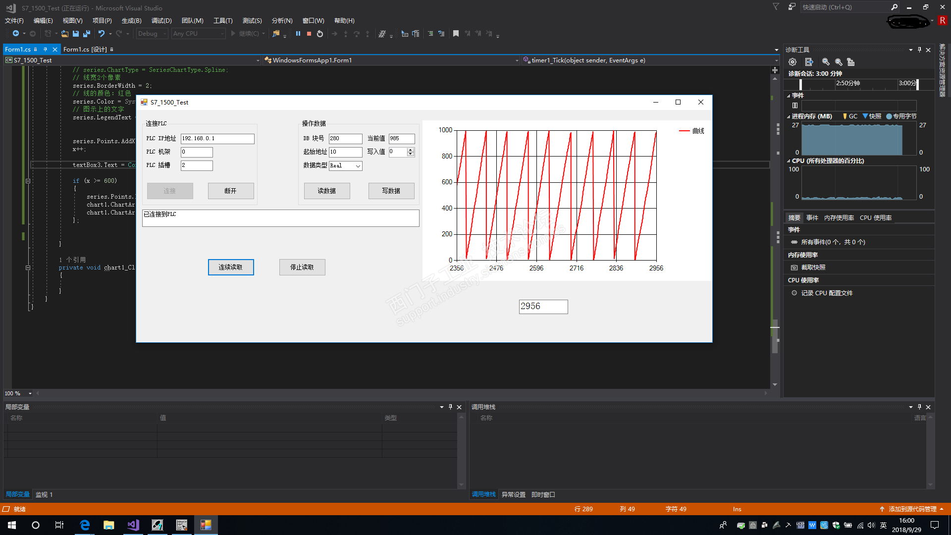 用300PLC 测试的!单个变量读取速度在50ms左右。谢谢楼主分享。