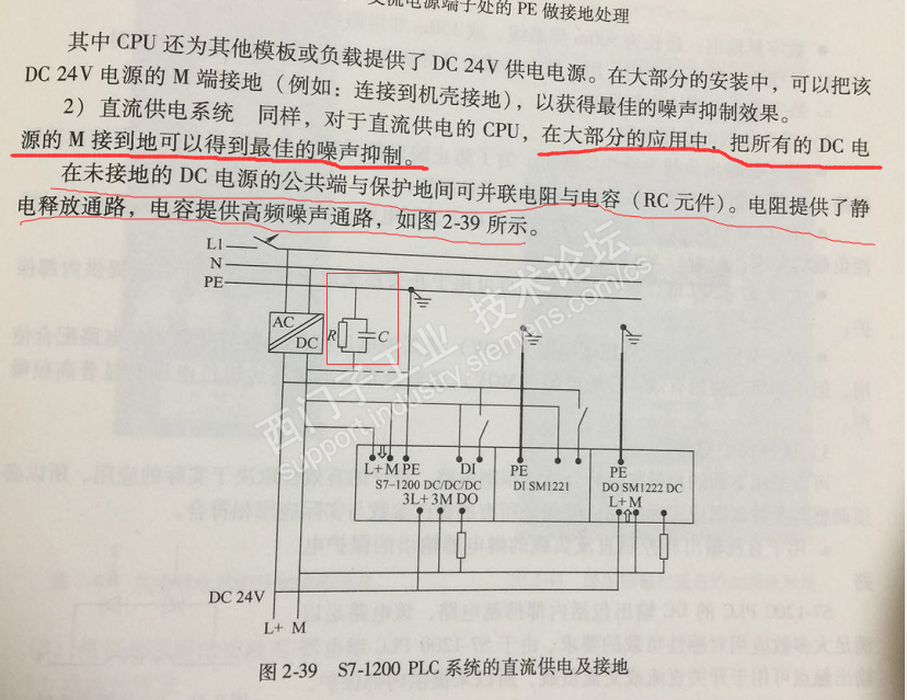 在《西门子自动化控制系统的接地》一书中指出,“把所有DC电源的M接到地可以得到最佳的噪声保护”——这貌似是为了抗干扰。 并且说如果M端没有接地的话,可以并联电阻和电容,电阻提供了静电释放通路,电容提供了高频噪声通路。