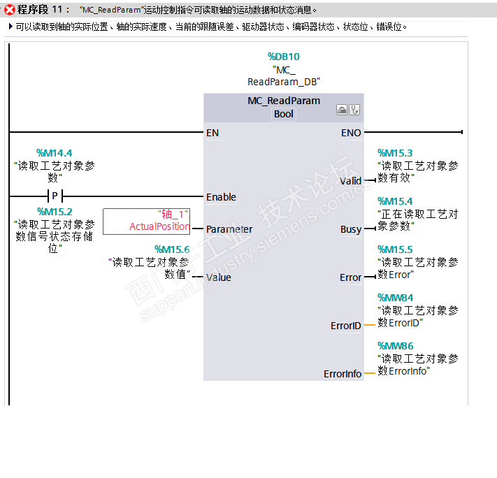 在博途V14中使用指令ReadParam读取轴实际位置参数,但报错,怎么解决?