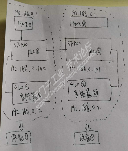 这2套设备的HMI和变频器的IP地址都一样,只有PLC的IP地址不同。
