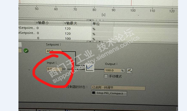 压力变送器的值到PID_Compact的input里,在调试版界面,setpoint里面的input值也应该有和在PID_Compact里的值一样,怎么会出现没有数值的现象