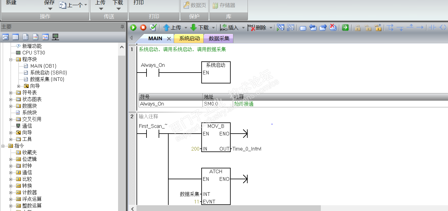 在将调用条件更改为SM0.1后 调用定时中断事件号11(指定的中断0时SMB34)可以启动定时中断和PID如果将事件号更改为10 则定时中断可以启用但是PID计算无法激活