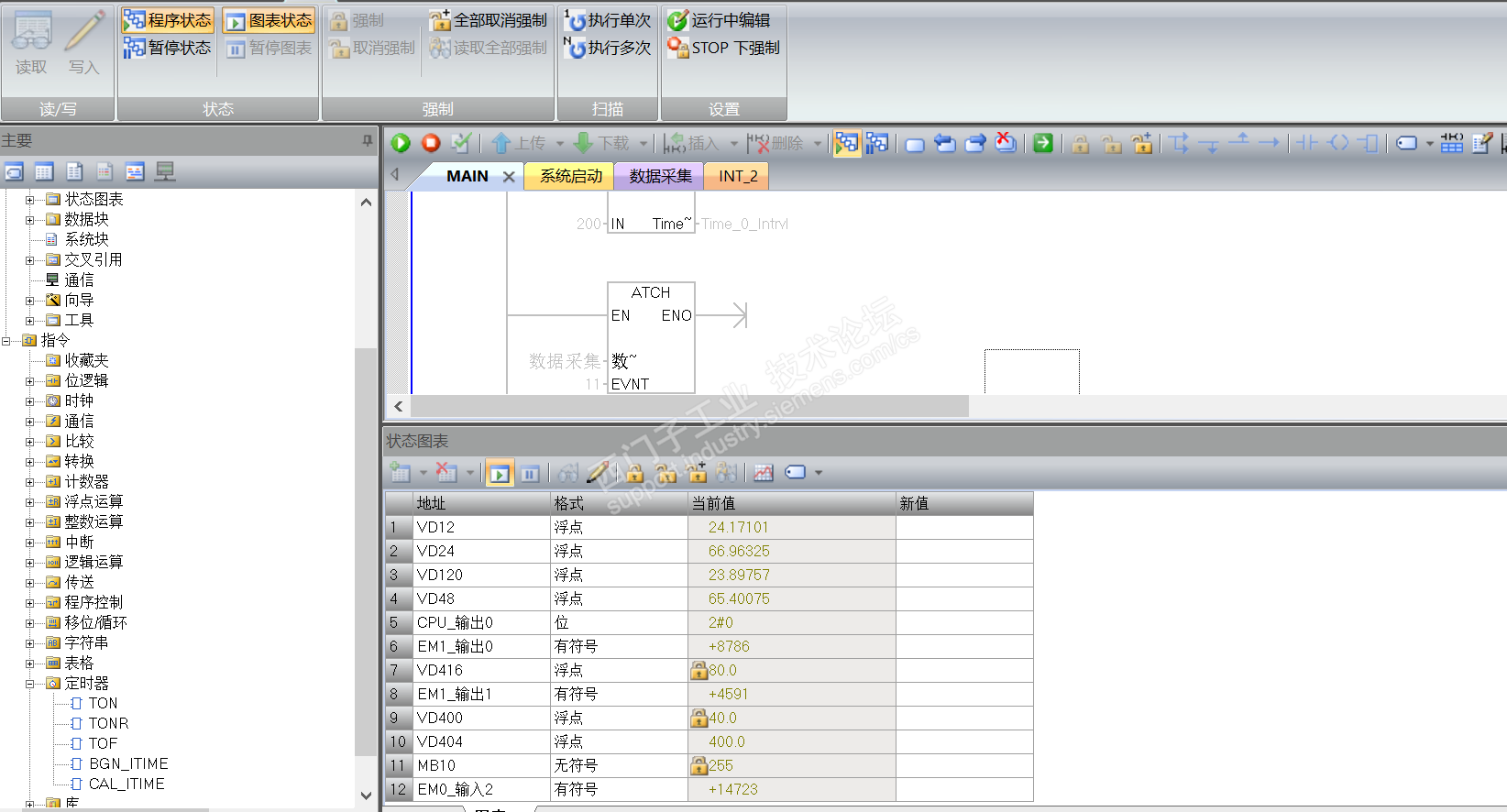 这是我给SMB34 定义的中断时间间隔 下面的数据时状态图表显示的监测到的数据和PID运算值