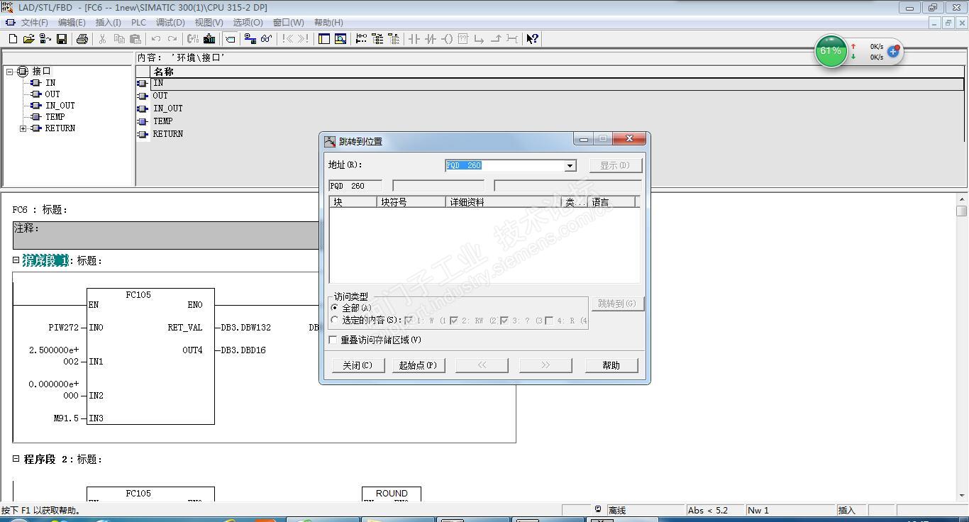 既然还有错误,说明还是用到这个地址了交叉引用里面看不到用到的话,那看看程序里面是不是有指针操作之类的,估计是有指针寻址的操作,如果能交叉引用到的话,那个下面的打开块按钮也就能点击了,如果不好找,可以在OB1里面挨个断开调用的FB 或FC,直到哪个不报错了,那就是那个程序块的问题