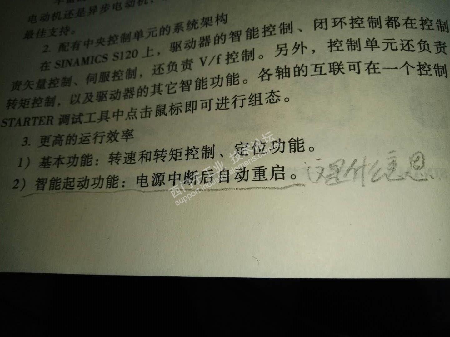 在一本技术资料上介绍了SINAMICS S120有一个“智能起动功能” ,这个功能是什么作用?改什么参数? 我手头上的资料上就简单说了一下“电源中断后自动重启”,但我实在不明白这个功能是什么。