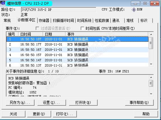 CPU故障 SF灯亮 在诊断缓冲区里显示有 BCD 转换错误,删除了程序里的T33故障就消除,但是感觉程序应该没有错误,紧急求助!
