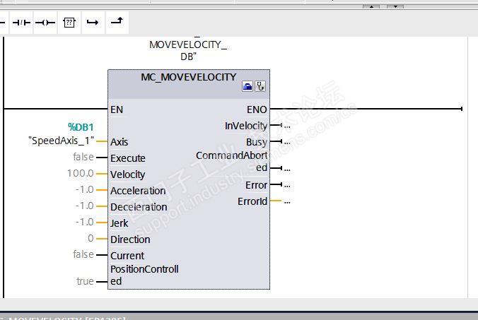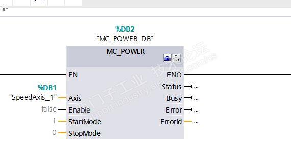 你工艺对象里面选择了TO-speedAxis 把它组态后,再程序里面就调用工艺指令里面的运动控制,先调用MC-POWER