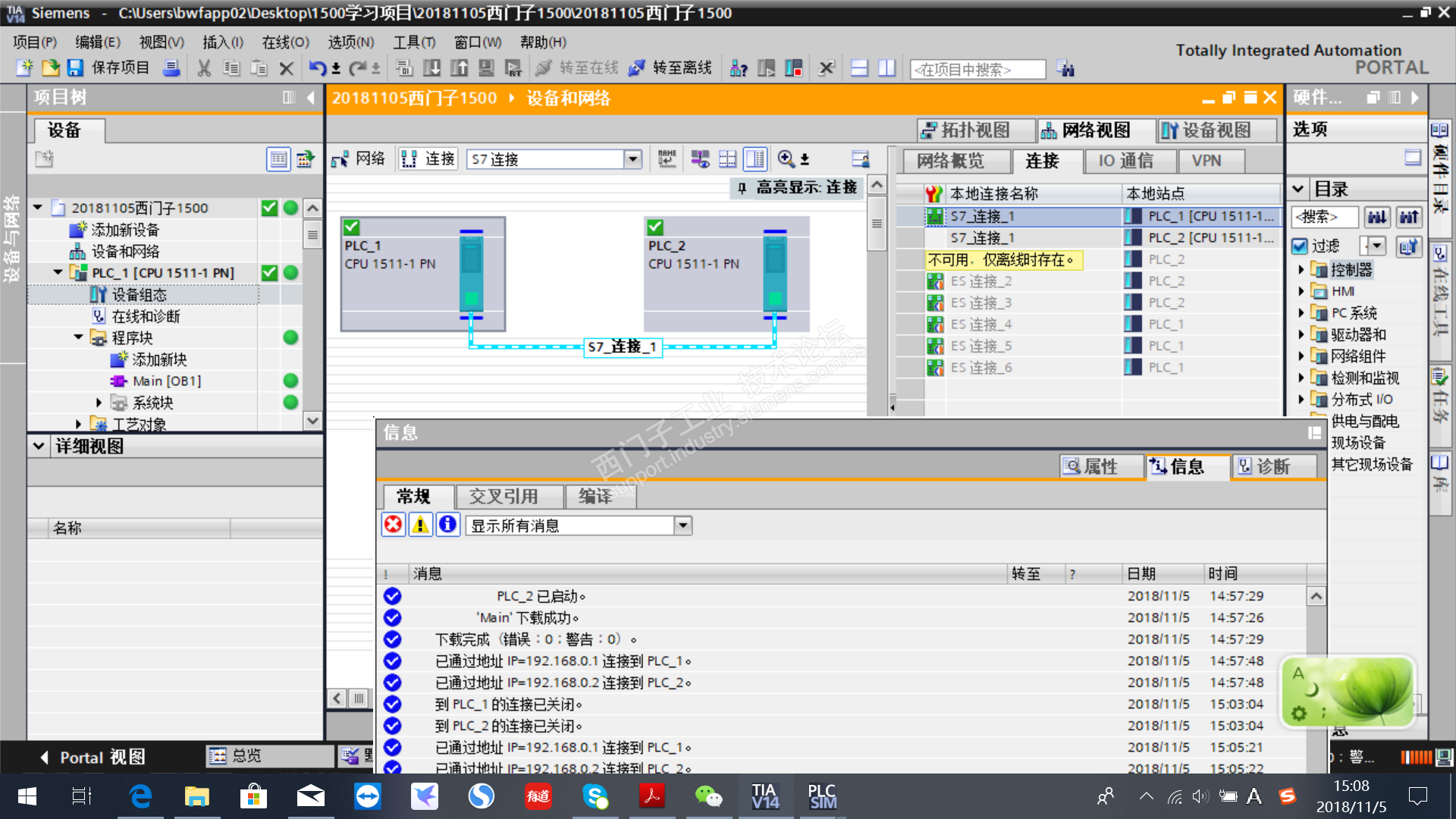 各位大神,两个1500做S7通信测试,在线后出现以下提示,是哪里有问题,连接处其中一个PLC提示不可用,仅离线时存在,这是怎么回事