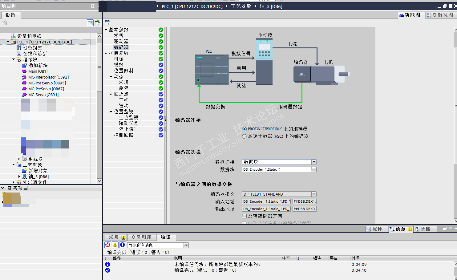 组态成功了,就需要把第三方编码器(位移传感器)的数据包装成西门子标准编码器报文81,实例中是直接用的模拟量伪装成报文81,而且看似很长,其实很简单,大部分都是些判断,溢出,错误处理等。