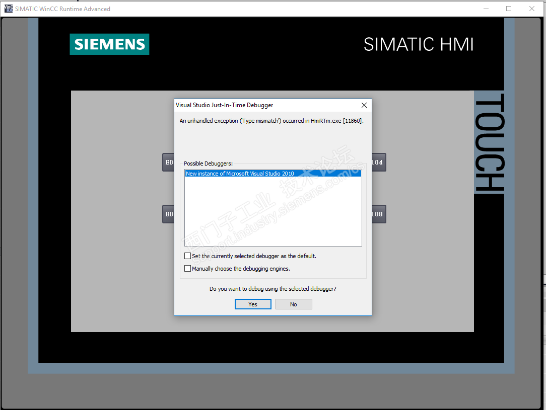 An unhandled exception ("Type mismatch") occurred in HmiRtm.exe [11860]