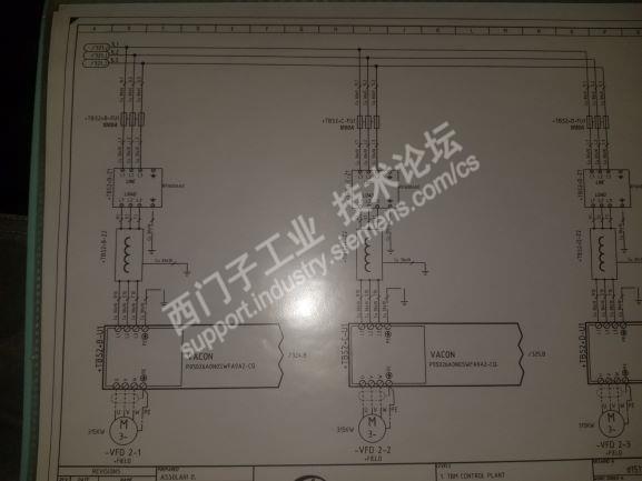这是我刚上夜班拍的电气图纸,拍的这两页是变频柜内主供电线路,第一张INCOMING FROM TRAFO 1600kVA……处为从变压器接过来的电缆,经QF1接的铜排,然后到第二页一直到每个单独的变频器。可以看出地线的连接情况。