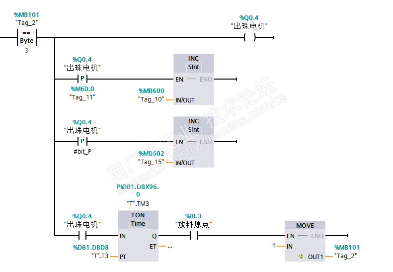 最近做了个小项目第一次用到1200,在其中用脉冲计数时发现信号ON时计数器一直在加,而不是按照预想的一次加一,后来通过比较和翻指令帮助手册发现ROL储存位地址的只能是位于 DB(FB 静态区域)或位存储区中,尔非是在临时变量区域中,不知各位有没有遇到类似的问题(下图中MB600是可以正常计数的,而MB602不能正常计数)