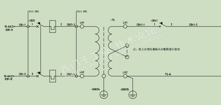 GH180 控制电源的供电电路,目测LX1为AC220V的火线。LX2为AC220V的N线,它与GND35相连并且接在了柜内的“地”排端子上。