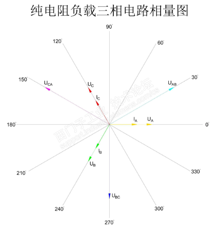 纯阻性负载的电压电流向量图,可知φ1和φ2都是30°,cosφ1=cosφ2=1.732/2
