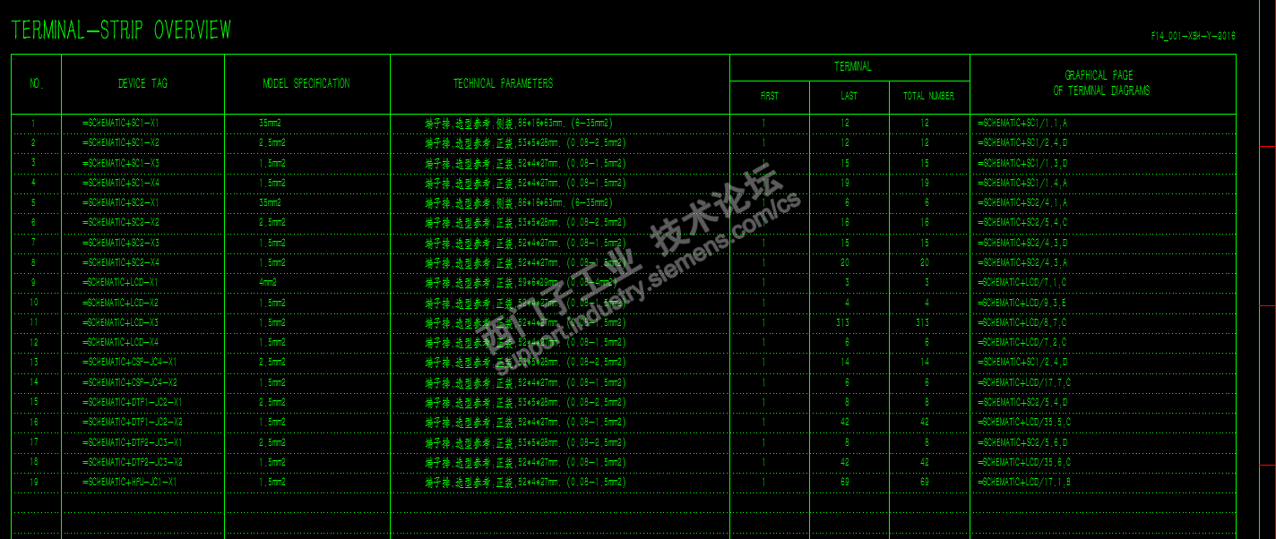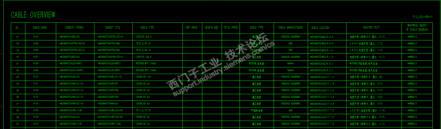 --接线图,原来在CAD中,的确是比较难画,但是现在,我都是EPLAN里面自动生成的。包含端子排总览+电缆图表+电缆总览,施工方可根据【端子排总览】进行箱内端子采购和布置,可根据【电缆总览】进行放线,可根据【电缆图表】进线电缆接线。三种表格我截图如下。