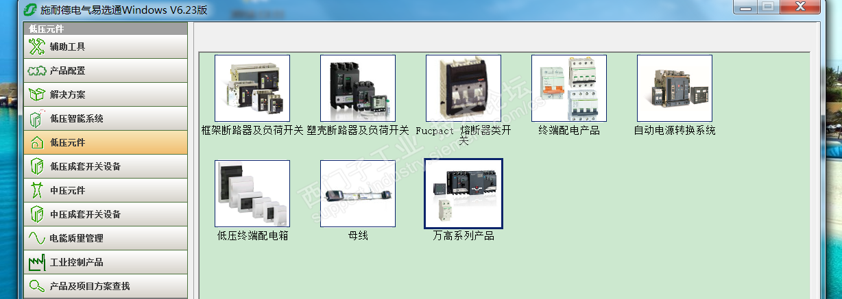 选型软件,施耐德易选通用的多一点(施耐德官网有,施耐德的元器件比较多/全,价格也不贵),其它基本都是样本上选的。